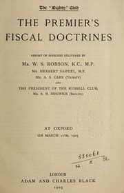 Read Online The premier's fiscal doctrines; report of speeches delivered by Mr. W.S. Robson, K.C.M.P., Mr. Herbert Samuel, M.P., Mr. A.S. Carr (Trinity) and the president of the Russell Club, Mr. A.H. Sidgwick (B [Leather Bound] Nook Internet Archive
